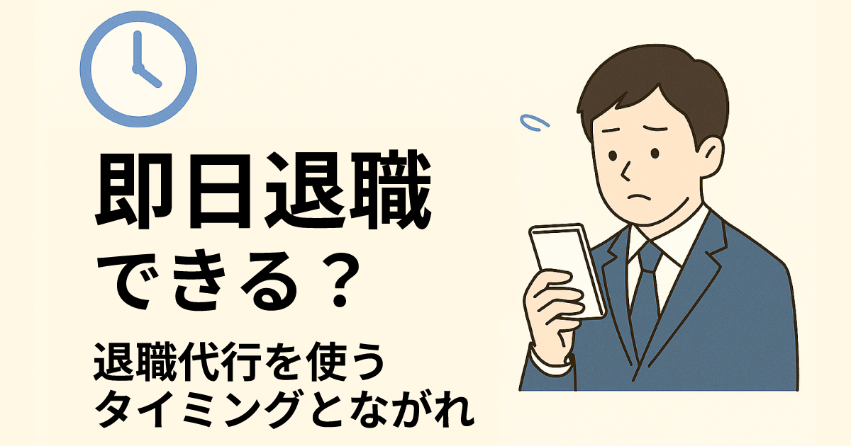 退職代行を利用すれば、精神的負担を減らしながら、即日で実質的な退職が可能になるケースは少なくありません。